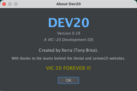 Dev20 is a complete development system used in conjunction with Kick Assembler for all the available memory configurations of the Vic 20. I’ve seen many of these complete development environments for the Commodore 64 but, apart from the excellent Turbo Rascal which only lets you code in Pascal, there isn’t a full-featured Vic equivalent.